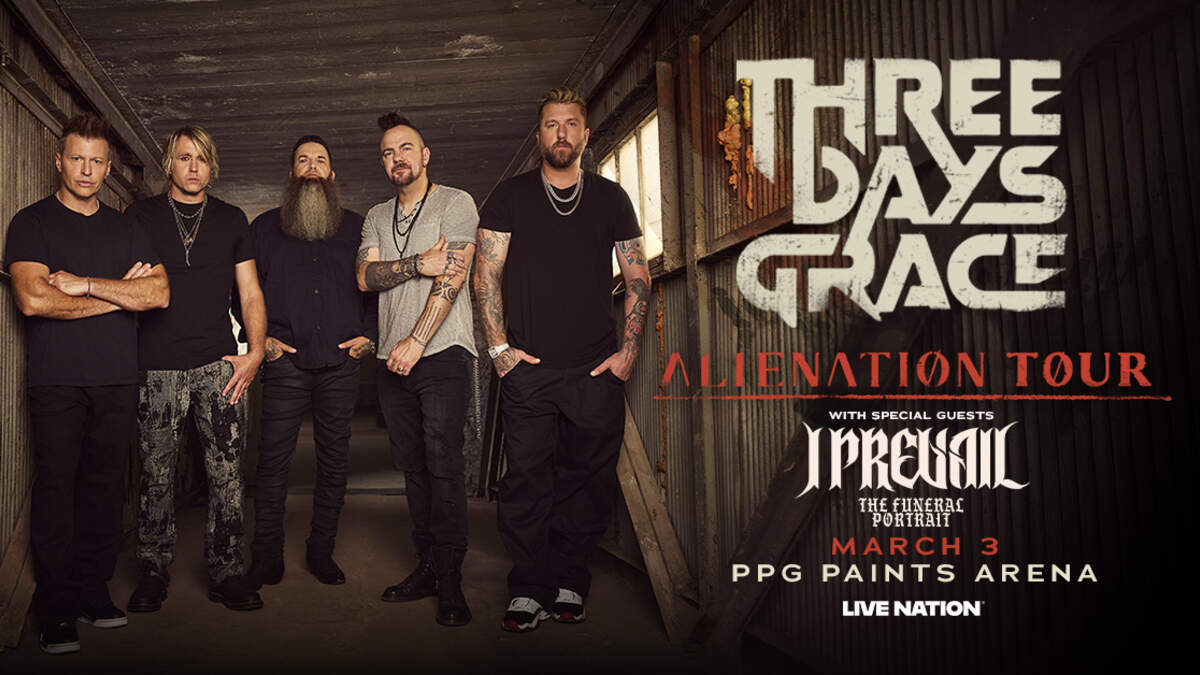 ock giants Three Days Grace announce their 2026 Alienation tour will stop at PPG Paints Arena in Pittsburgh, PA, on March 3, with support from I Prevail and The Funeral Portrait. Three Days Grace had a monster year in 2025 with the release of their latest album Alienation, with #1 songs "Mayday" and "Apologies" along with sold out shows in Canada (co-headline with Volbeat) and the US (co-headline with Breaking Benjamin) and an upcoming sold out European tour (Badflower).